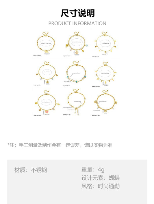 A41: 18K Gold Plated Stainless Steel Minimalist Anklet: Golden Butterfly