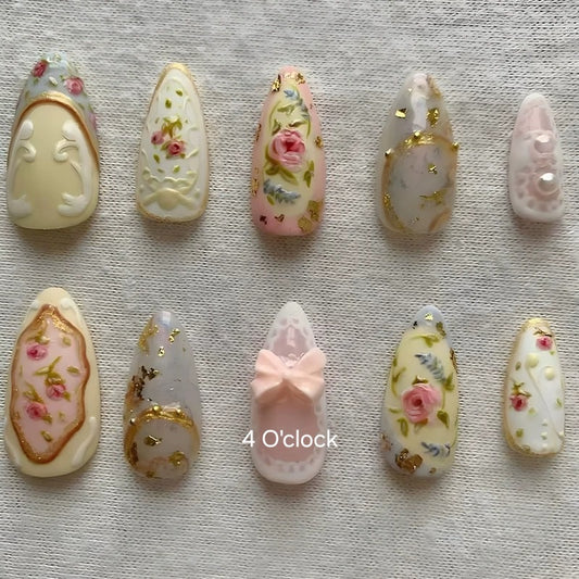 N03: Press On Nails: Royal Flower. Size M (10 Pcs) - With 12pcs FREE glue stickers.