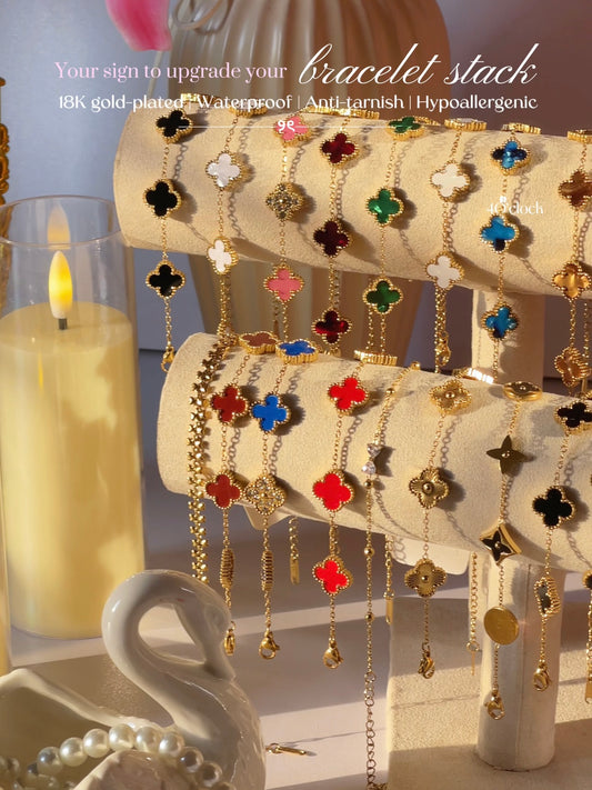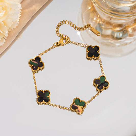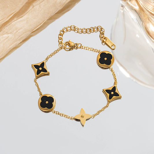 B79: 18k Gold Plated Stainless Steel Minimalist Bracelet: Golden Black Clover
