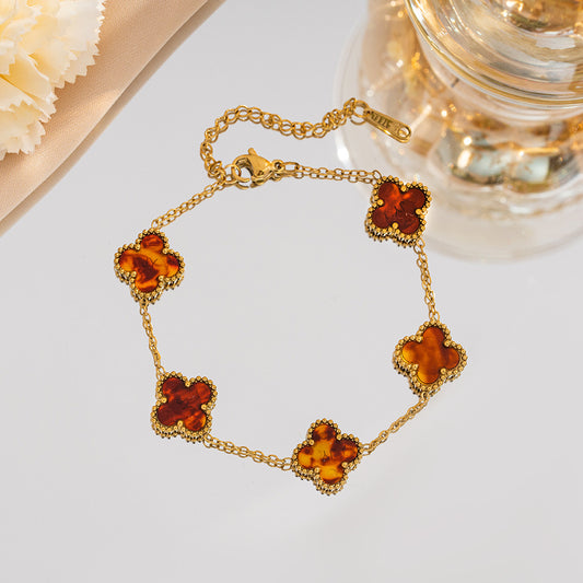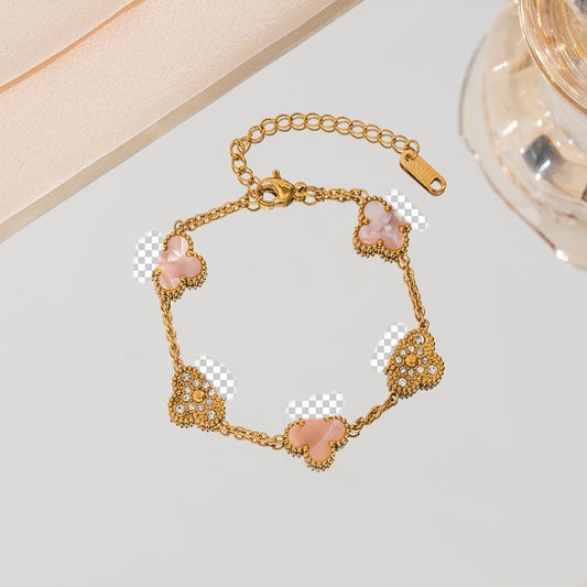 B82: 18k Gold Plated Stainless Steel Minimalist Bracelet: Golden Pink Clover