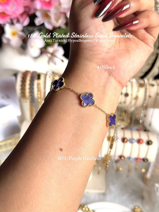 B51: 18k Gold Plated Stainless Steel Minimalist Bracelet:Purple Gradient
