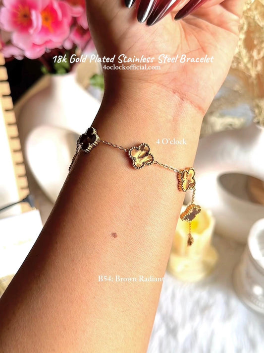 B54: 18k Gold Plated Stainless Steel Minimalist Bracelet:Brown Radiant