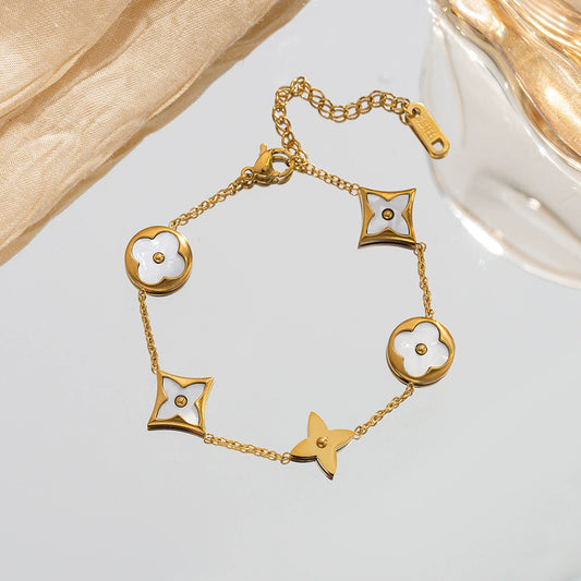 B78: 18k Gold Plated Stainless Steel Minimalist Bracelet: Golden White Clover