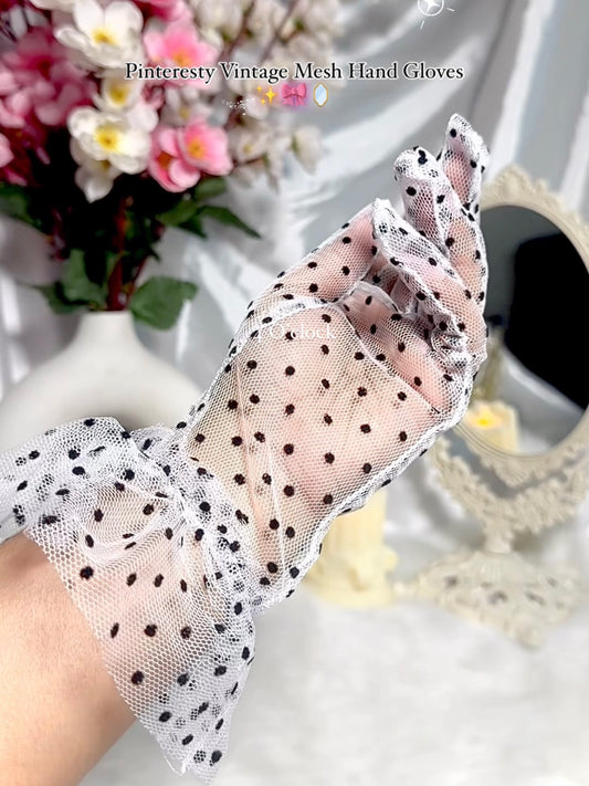 ✨🕊️Vintage Mesh Handgloves: Black Dotted (White) - 1 pair🕊️✨