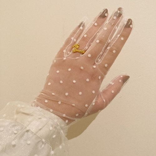 ✨🤍Vintage Mesh Handgloves: White Dotted (White) - 1 pair🤍✨