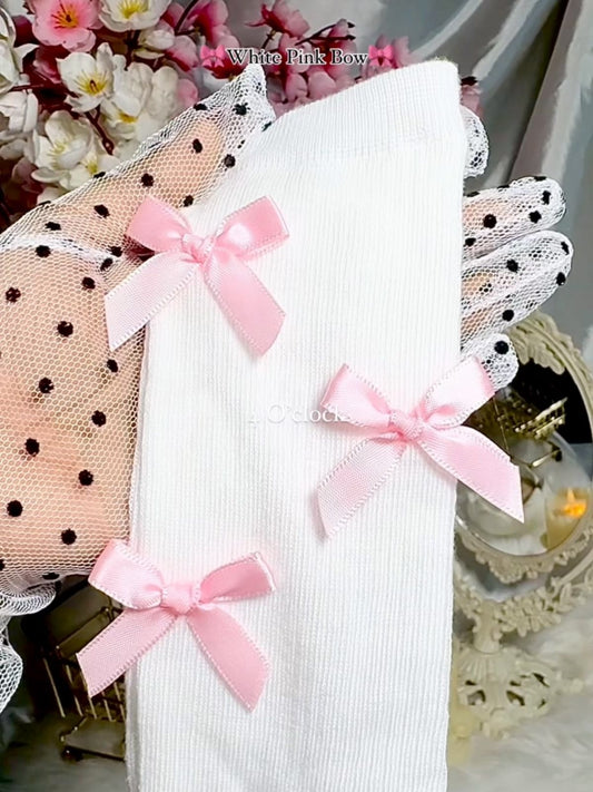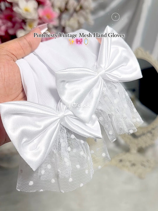✨🪞🎀Vintage Mesh Handgloves: White Bow (White) - 1pair🎀🪞✨