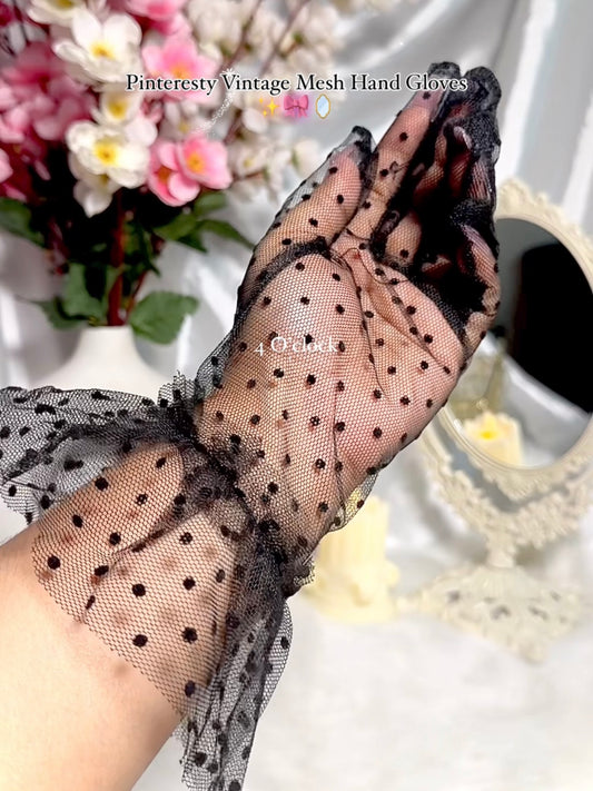 ✨🖤Vintage Mesh Handgloves: Black Dotted (Black) - 1pair🖤✨