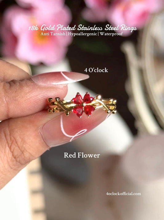 💍92: 18k gold plated Stainless steel Finger rings: Red Flower✨