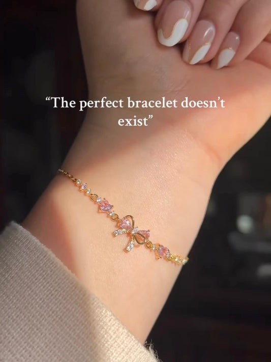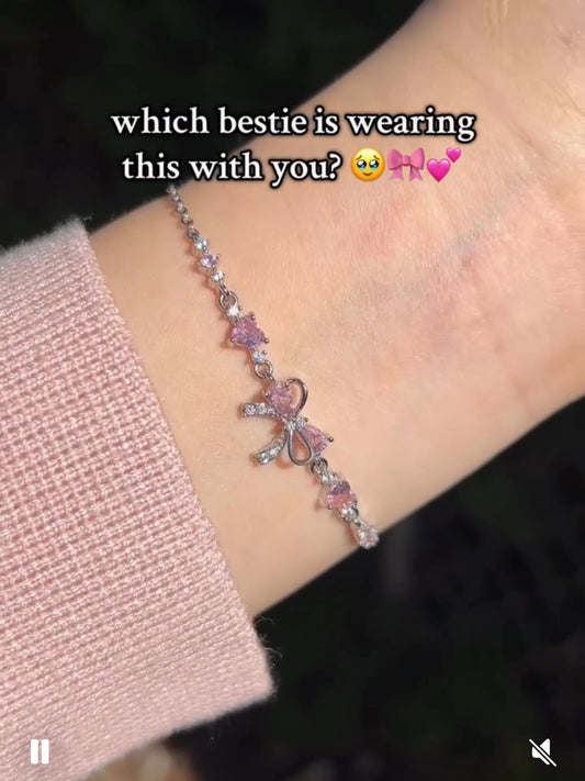 Silver: ✨🎀Bow Pink Stone Bracelet🎀✨ (Without box)