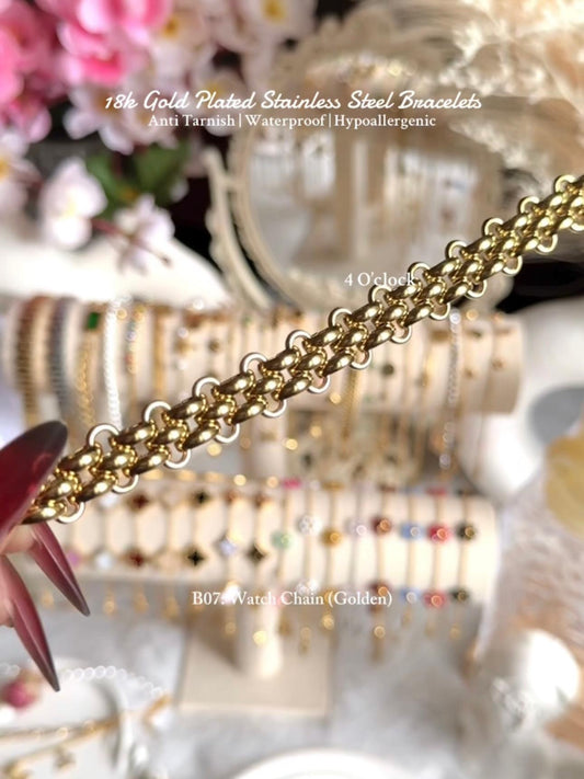 ⚜️B07: 18k Gold Plated Stainless Steel Minimalist Bracelet:Watch Chain (Golden)✨