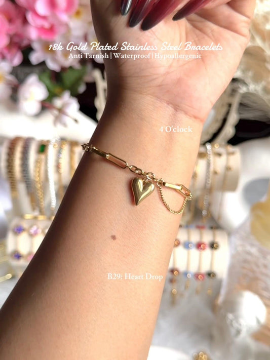 ⚜️B29: 18k Gold Plated Stainless Steel Minimalist Bracelet:Heart Drop✨