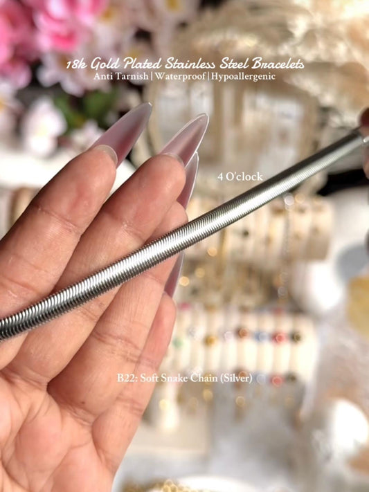⚜️B22: 18k Gold Plated Stainless Steel Minimalist Bracelet:Soft Snake Chain (Silver)✨