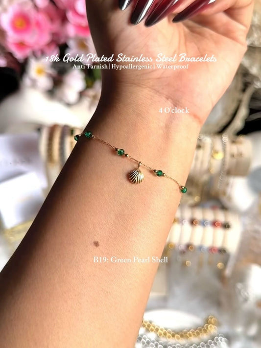 ⚜️B19: 18k Gold Plated Stainless Steel Minimalist Bracelet:Green Pearl Shell✨
