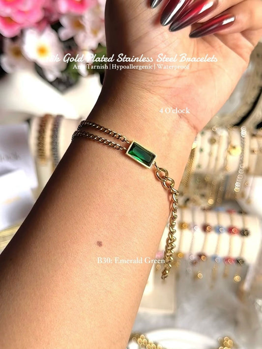 ⚜️B30: 18k Gold Plated Stainless Steel Minimalist Bracelet: Emerald Green✨