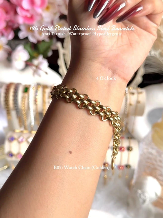 B07: 18k Gold Plated Stainless Steel Minimalist Bracelet:Watch Chain (Golden)
