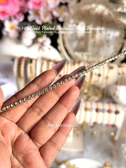 ⚜️B09: 18k Gold Plated Stainless Steel Minimalist Bracelet:Full Diamond✨