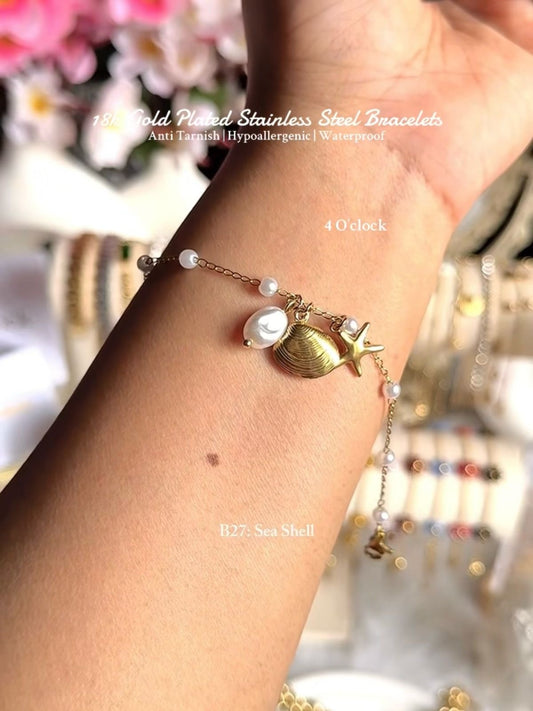 ⚜️B27: 18k Gold Plated Stainless Steel Minimalist Bracelet: Sea Shell✨