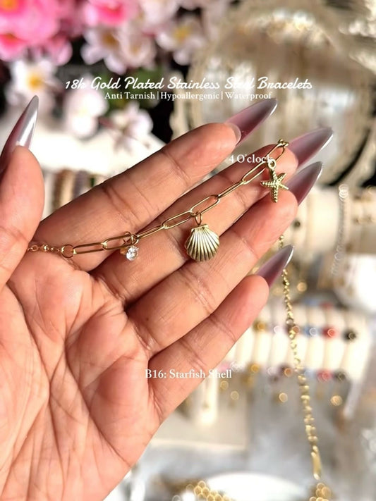 ⚜️B16: 18k Gold Plated Stainless Steel Minimalist Bracelet:Starfish Shell✨