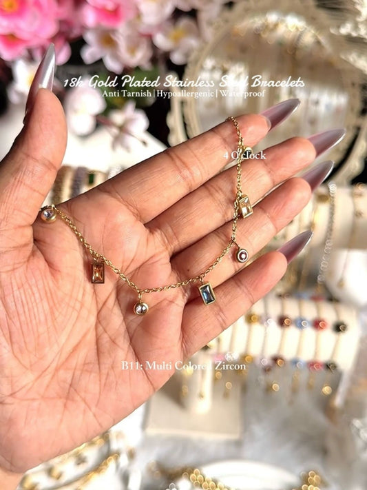 B32: 18k Gold Plated Stainless Steel Minimalist Bracelet:Rainbow Drop