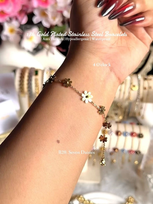⚜️B28: 18k Gold Plated Stainless Steel Minimalist Bracelet: Seven Daisies✨