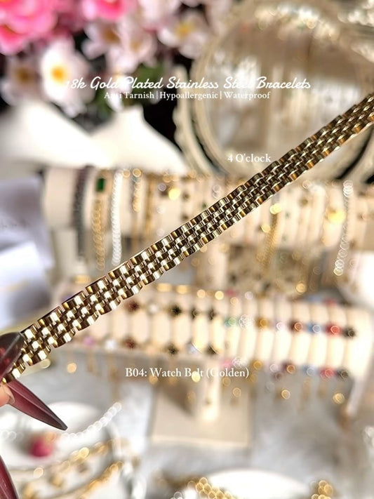 ⚜️B04: 18k Gold Plated Stainless Steel Minimalist Bracelet: Watch Belt (Golden)✨
