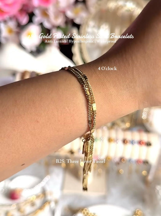 ⚜️B25: 18k Gold Plated Stainless Steel Minimalist Bracelet: Three Layer Tassel✨