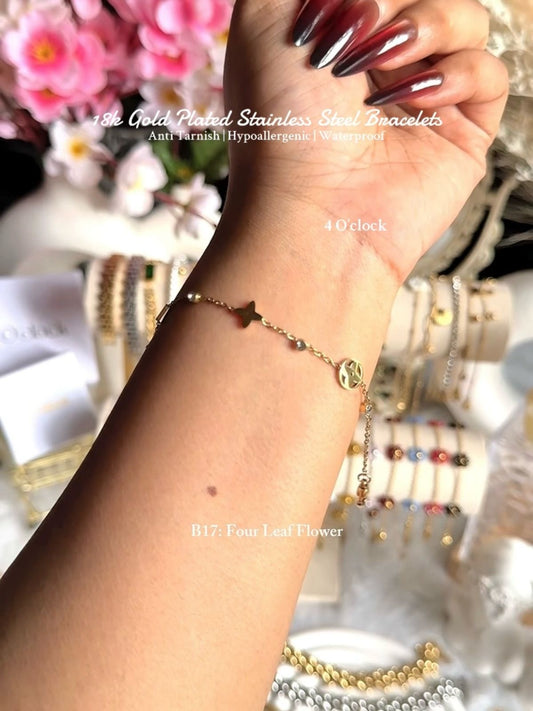 ⚜️B17: 18k Gold Plated Stainless Steel Minimalist Bracelet:Four Leaf Flower✨