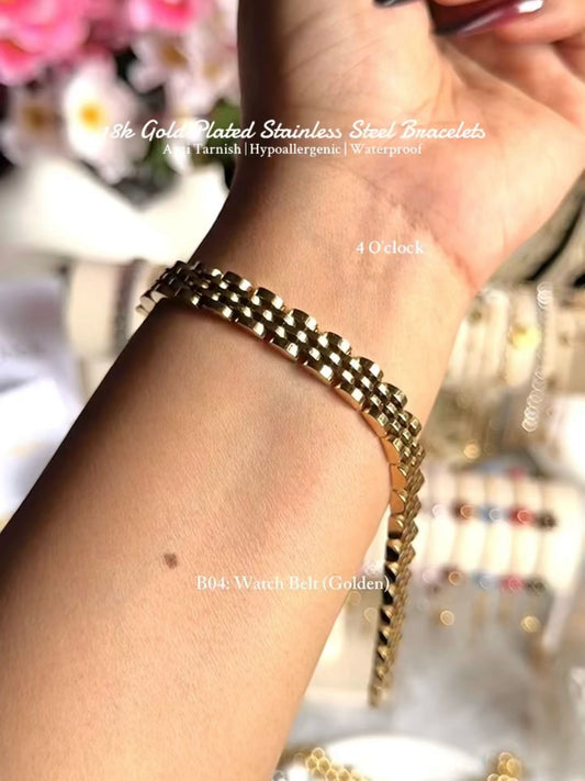 B04: 18k Gold Plated Stainless Steel Minimalist Bracelet: Watch Belt (Golden)