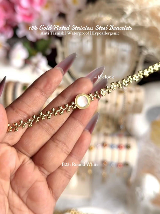 ⚜️B23: 18k Gold Plated Stainless Steel Minimalist Bracelet:Round White✨