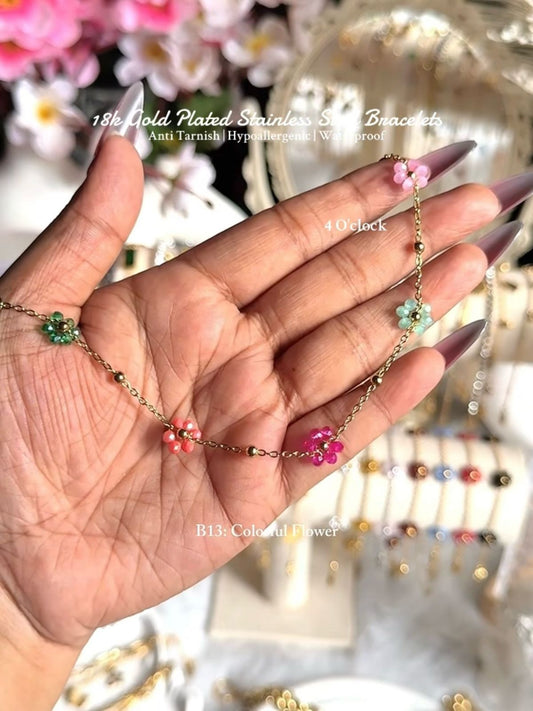 ⚜️B13: 18k Gold Plated Stainless Steel Minimalist Bracelet:Colorful Flower✨