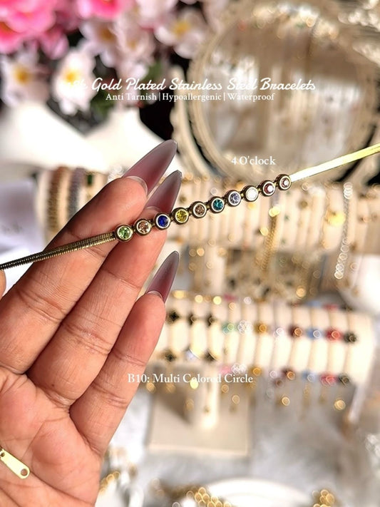 ⚜️B10: 18k Gold Plated Stainless Steel Minimalist Bracelet: Multi Colored Circle✨