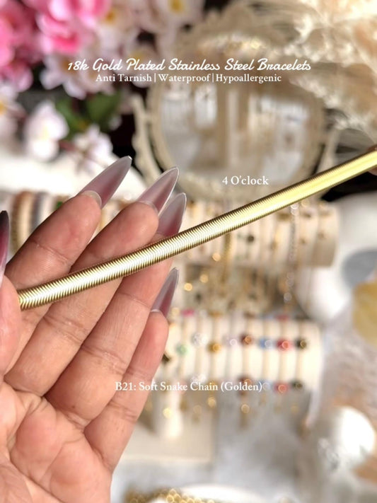 ⚜️B21: 18k Gold Plated Stainless Steel Minimalist Bracelet:Soft Snake Chain (Golden)✨