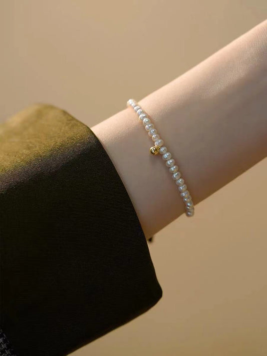 B15: 18k Gold Plated Stainless Steel Minimalist Bracelet: Pearl Bean