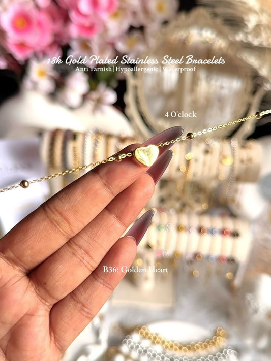 ⚜️B36: 18k Gold Plated Stainless Steel Minimalist Bracelet:Golden Heart✨