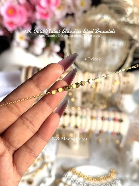 ⚜️B35: 18k Gold Plated Stainless Steel Minimalist Bracelet:Moving Cubes✨