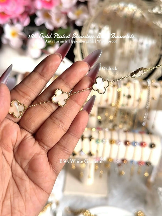 ⚜️B50: 18k Gold Plated Stainless Steel Minimalist Bracelet:White Gradient✨