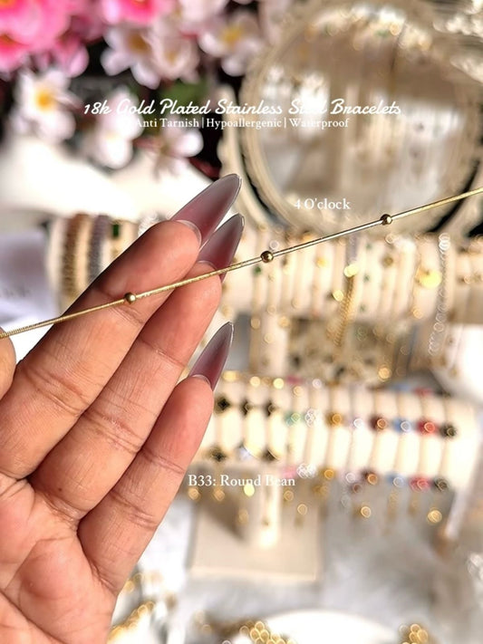⚜️B33: 18k Gold Plated Stainless Steel Minimalist Bracelet: Round Bean✨