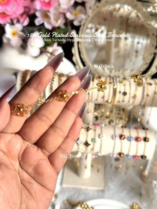 ⚜️B42: 18k Gold Plated Stainless Steel Minimalist Bracelet:Brown Flower✨
