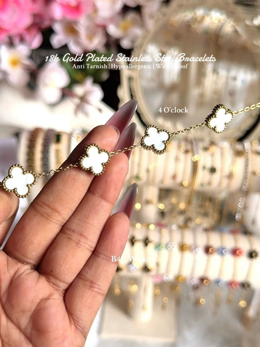 ⚜️B44: 18k Gold Plated Stainless Steel Minimalist Bracelet:White Flower✨