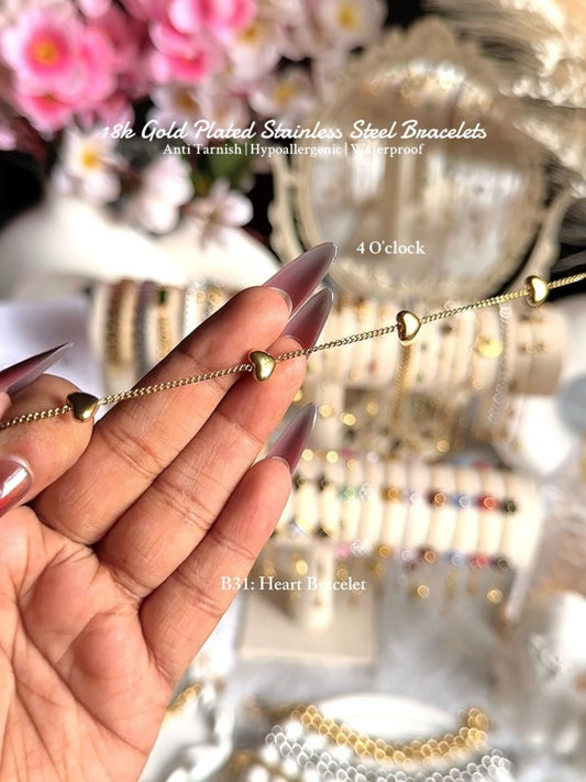⚜️B31: 18k Gold Plated Stainless Steel Minimalist Bracelet:Heart Bracelet ✨