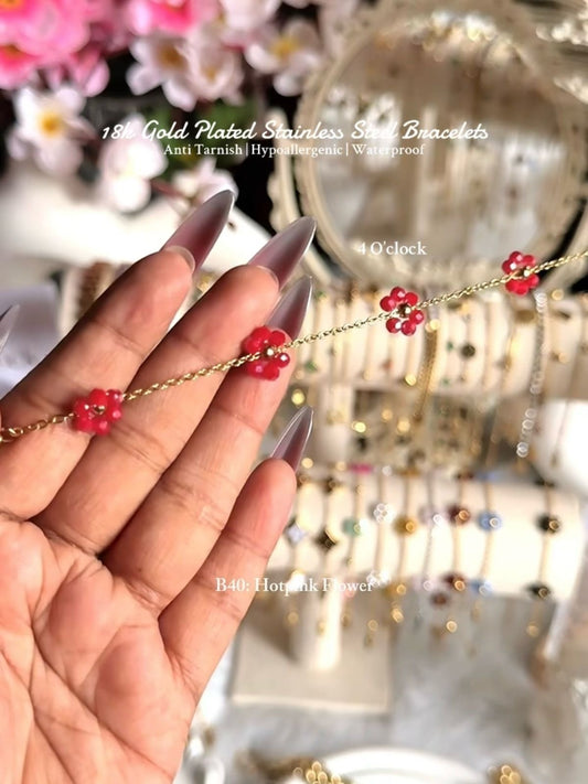 ⚜️B40: 18k Gold Plated Stainless Steel Minimalist Bracelet:Hotpink Flower✨