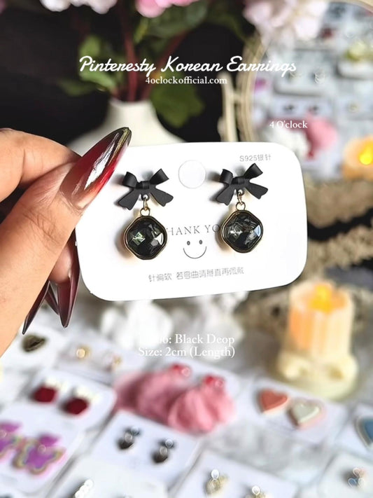 🫰🏻KE06: Korean Earrings: Black Drop 🎀✨