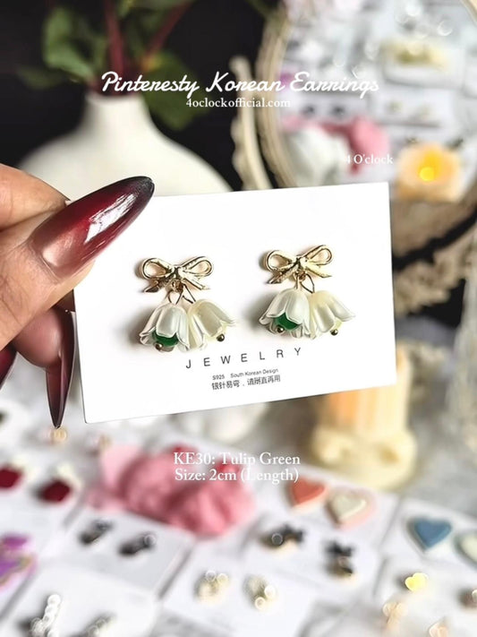 🫰🏻KE30: Korean Earrings: Tulip Green 🎀✨