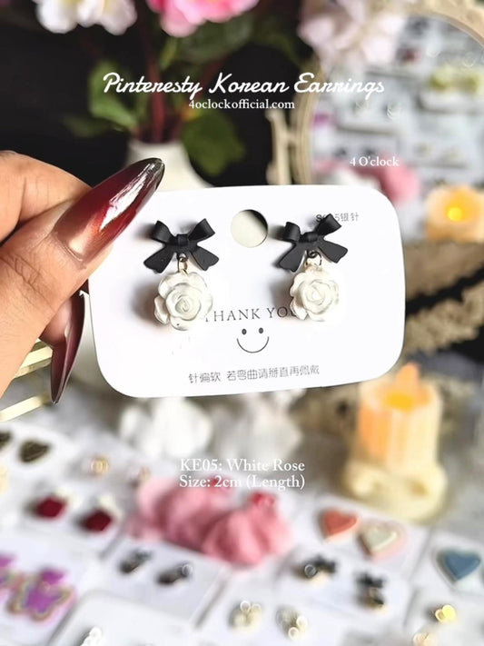 🫰🏻KE05: Korean Earrings: White Rose🎀✨