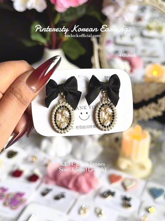 🫰🏻KE14: Korean Earrings: Black Stones 🎀✨