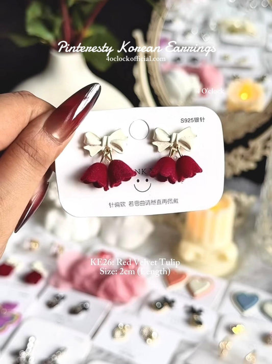 🫰🏻KE26: Korean Earrings: Red Velvet Tulip 🎀✨