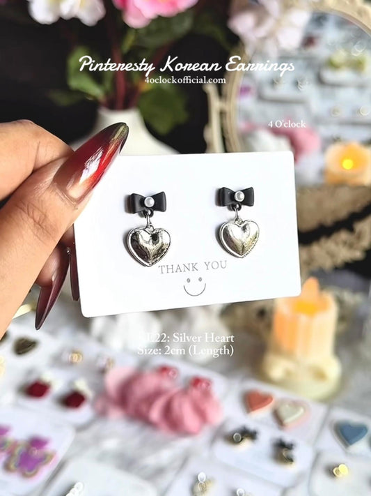 🫰🏻KE22: Korean Earrings: Silver Heart 🎀✨