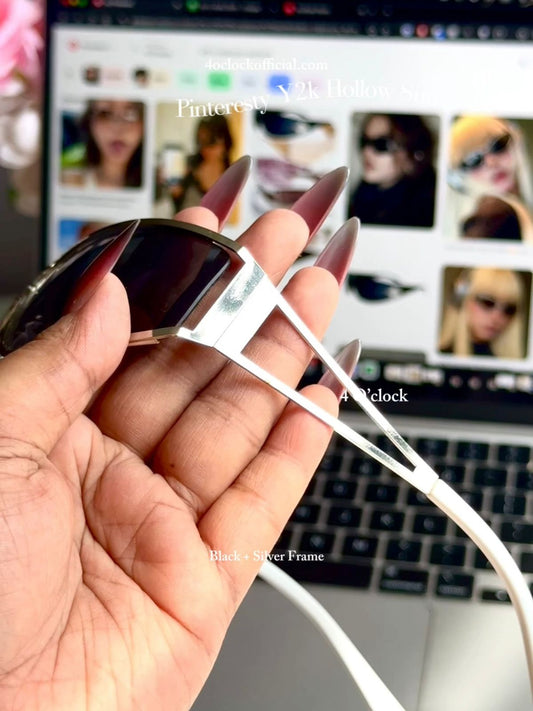 S28: Pinteresty Y2k Metal Hollow Sunglasses - Black + Silver (with box) Unisex