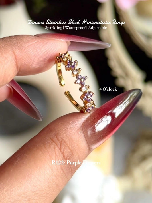 💍R122: Stainless Steel Zircon Minimalistic Finger Ring: Purple Flowers (With Box)✨