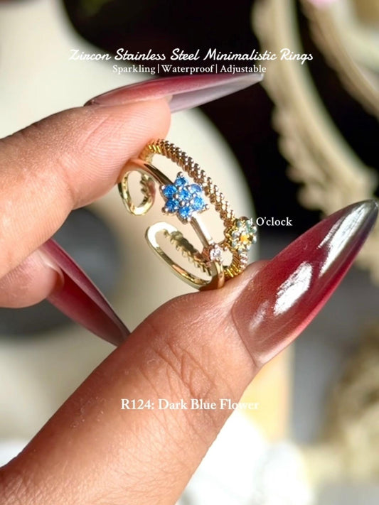 💍R124: Stainless Steel Zircon Minimalistic Finger Ring: Dark Blue Flower (With Box)✨